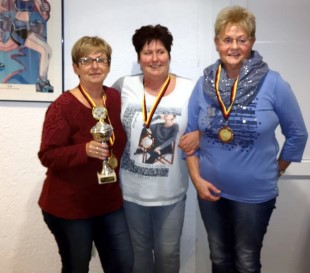 Wer hatte also in der Zusammenrechnung die berühmte Nase vorn. Dank zweier ausgeglichener Runden wurde Eveline Heinze die VfB Rommé Meisterin 2018 mit 206 Punkten. Sie konnte aus den Händen von Heike Schmidt, Mitglied des VfB Vorstandes zum zweiten Mal den Pokal im Empfang nehmen. Auf dem 2. Platz folgte Kerstin Zühlke (307 Punkten) und als Dritte und somit auf dem Siegerpodest, Karin Ziemann mit 319 Punkten.